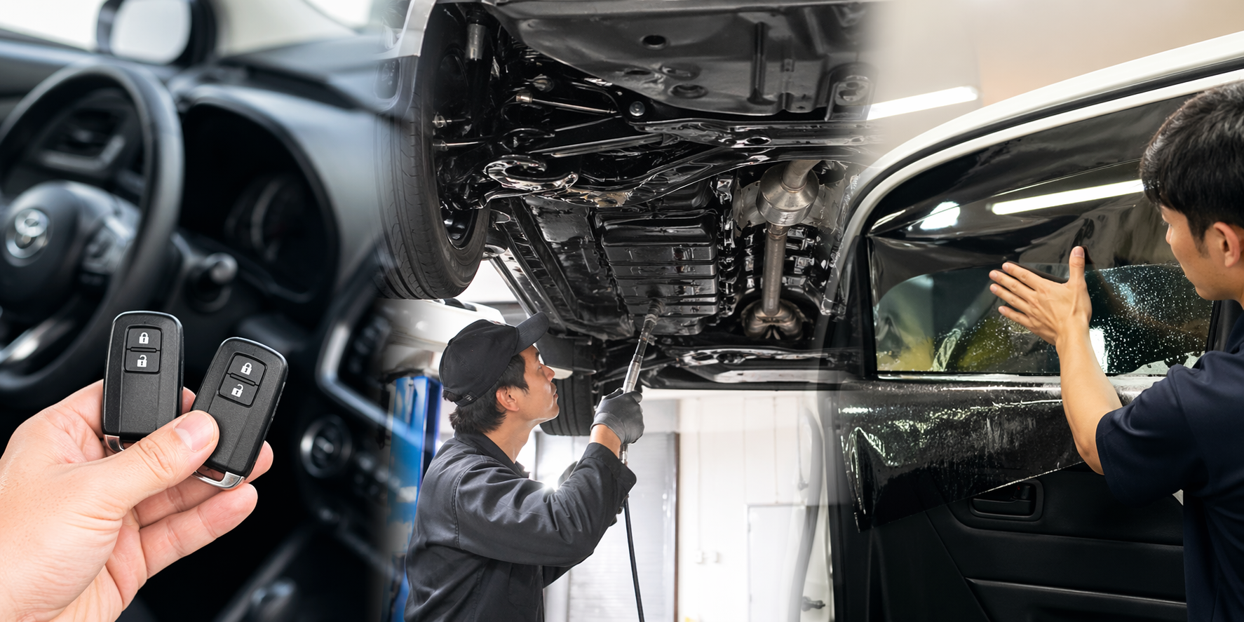 一台一台の状態を見ながら、防錆・カーフィルム・合鍵作成を行っています。